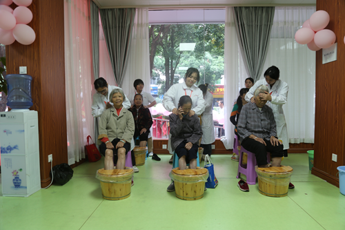 老年人体验瑶药足浴及壮医分筋按摩