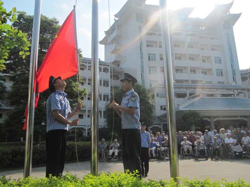 为庆祝“5.1”劳动节,2012年5月1日,我公寓组织开展了升国旗仪式和游园活动。期间还进行了揭牌仪式,这是中国老年学学会老年医学委员会事业发展中心颁发给我公寓的又一荣誉——老年医疗健康服务合作示范单位,这是全体员工和老人共同努力的结果。我们将珍惜荣誉,继续做好为老服务的工作。