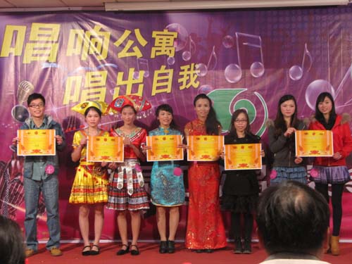 一开始,以11组选手齐唱《同一首歌》登台亮相,拉开决赛的帷幕。后各组选手依次上台比拼,一时间小小舞厅成了没有“硝烟的战场”,选手们的精彩演唱,博得了观众们的阵阵掌声、欢呼声。本次决赛设一等奖1名,二等奖2名,三等奖3名;此次比赛还邀请了南宁市老年大学的四位老师担任评委,促进了老年大学与我公寓之间的交流。本次比赛共进行2个小时,在这两个小时里所有参赛员工均发挥了他们的最高水平,最终卓瑜以精彩的嗓音征服了所有评委,夺得了冠军,李聪、吴秀丽和宁梦莲获得了二等奖,覃步云和韦美华、陆真真、陆清获得了三等奖,此次歌唱比赛充分展示了公寓员工们的自信与风采。