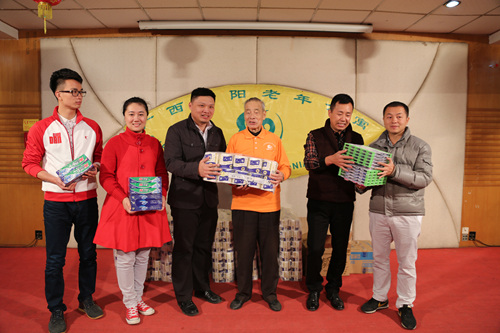 新闻工作者为老人带来丰富的慰问品