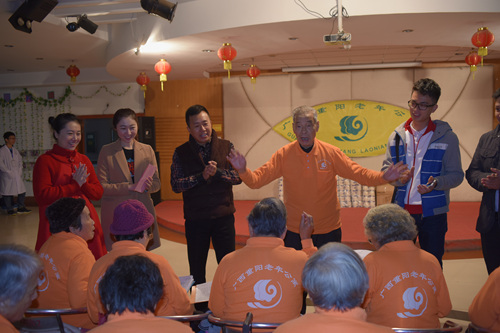 活动现场,南宁电视台著名记者张凯、宋旸、张泉分别为老人表演了快板、二人转和独唱;广西中医药大学赛恩斯学院的学生志愿者们为老人免费按摩;丽竹美发学校的志愿者为老人免费理发。