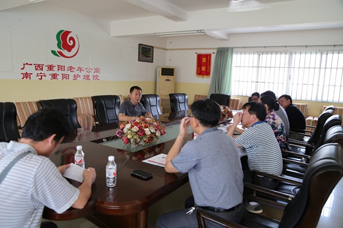 2015年6月18日下午,桂林市永福县副县长李庆等率县民政局、卫计委、中医院一行8人到我公寓参观,广西重阳老年公寓办公室主任李晓峰陪同观,参观过后双方进行了座谈交流。