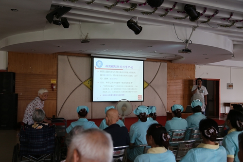 6月23日下午3点,我公寓在二楼舞厅开展了预防“中东呼吸综合征”知识讲座,旨在强化医务人员及住院患者、亲友对近一时期爆发流行于韩国等地“中东呼吸综合征”的认识和了解。讲座由我院科技部主任陈昌明主讲,全院非当班医生、护士、护理员及非医护人员都等积极聆听讲座。