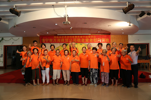 2015年8月19日上午9点,一场由南宁万湾商贸有限责任公司带来的敬老爱老慰问演出正在上演,万湾公司不仅为公寓老人们带来了精彩的、时尚的、快乐的文艺活动,还为老人们带来了丰富的物资,用自己的实际行动践行“敬老爱老”的优良传统,传递正能量,履行社会责任,希望能有更多的爱心企业像他们一样积极加入到关爱老年人的行列中,为老年事业贡献一份力量!