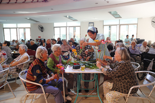 趣”在重阳·花样年华互动活动。为了进一步营造助老、爱老的社会氛围,让老人过上一个温馨愉快的节日,我公寓于2015年10月21日上午9:00在二楼舞厅开展了“趣在重阳·花样年华”互动活动。我公寓组织了老人学习插花、喝菊花茶,插花结束后,开展了重阳节知识抢答活动,老人都积极举手抢答,现场气氛热闹、轻松、愉快。同时,公寓还为老人准备了一份礼物,为老人送上祝福和温暖。