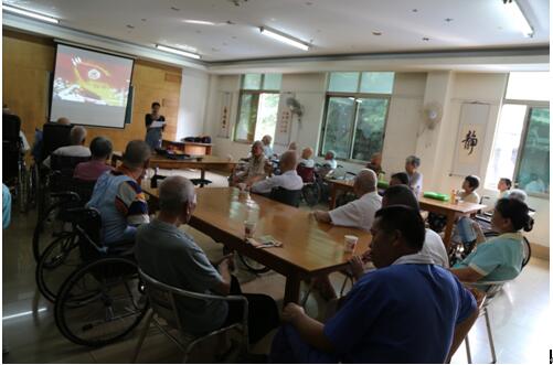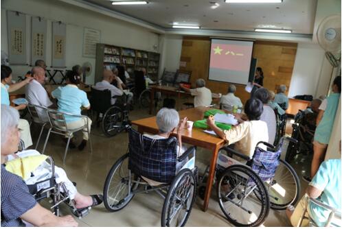 为了庆祝2017年“八一”建军节90周年纪念日,讴歌人民解放军对伟大祖国和人民作出的丰功伟绩,上午9点,老年公寓社工们组织全院退伍老兵在阅览室举行《回眸历史·携手共建》——八·一主题座谈会,与退伍老兵们共同回顾中国人民解放军军史、观看人民解放军的现状与未来发展、倾听老兵们的峥嵘岁月。