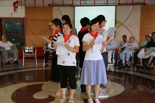 本次活动分为四个环节。主持人开场致辞、老教师代表发言、老教师才艺展示,歌曲合唱、礼品派发。支持人以富含饱满和感激的感情开场致辞表示对教师们的祝福,同时,也引导使老教师们对本次教育座谈会的思考。才艺展示和歌曲合唱——《每当我走过老师窗前》更是把活动推向了高潮。公寓还为每位老教师派发了一份精美的小礼品。最后,老教师和公寓员工一起合影留念,记录着在老年公寓的教师节活动!