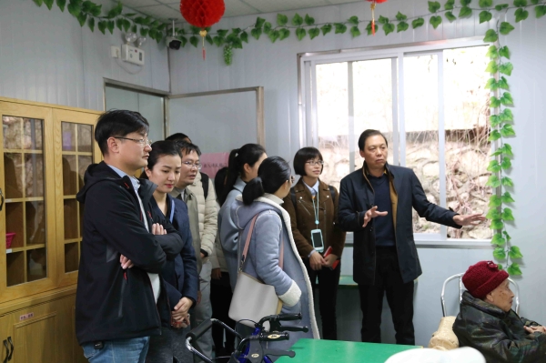 在杨龙副院长的陪同下,学校老师先是参观了公寓中医康复保健室、颐养五区、多功能厅、护理院以及各区活动室。随后在会议室针对护理实训基地建设进行了深入的交流。