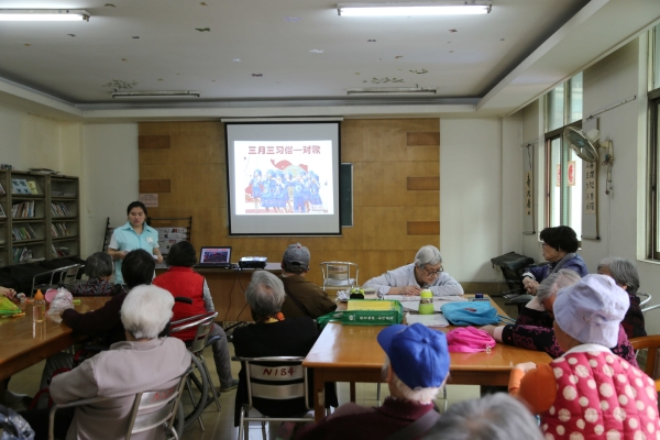 农历三月三是广西壮族的民族传统节日,这一天壮乡里成了歌的海洋,连空气里都弥漫着歌的气息。这一天,公寓里也有过节的气氛。听,他们在对刘三姐的山歌,听到了吗?除了对歌外,社工还组织老人一起讨论三月三的民风民俗,带领老人一起制作简易绣球。看着老人热闹的场面,觉得“三月三”在老人心里还是很有分量的。