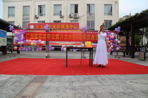 2023年12月12日上午,为庆祝广西重阳老年公寓万力分院成立5周年,同时,为进一步弘扬重阳“尊老、敬老、爱老”的服务宗旨,丰富在住长者的精神文化活动,万力分院特邀广西“心连心”文化旅游艺术总团到现场开展庆祝2023年度敬老暨开业五周年文艺演出,应邀参加活动的还有万力社区居委会领导及工作人员。