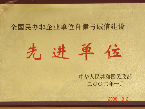 2006年01月获得全国民办非企业单位自律与诚信建设先进单位称号