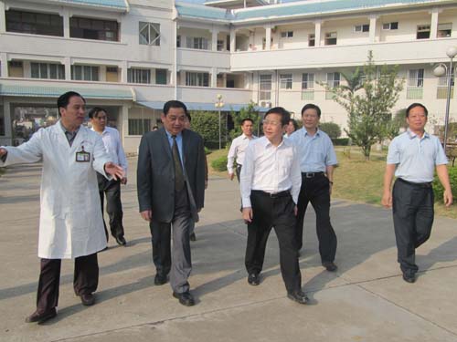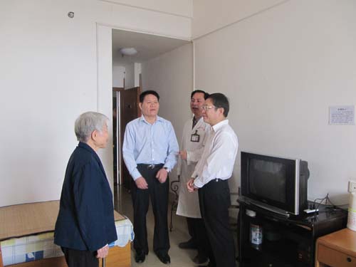 2011年11月3日上午,自治区政府副主席高雄在自治区民政厅厅长陈利丹等领导陪同下到广西重阳老年公寓视察并指导工作。高副主席参观了我公寓的九楼VIP套房,八楼老人房间、二楼舞厅以及阅览室等硬件设施,并在九楼露台与歌唱队的老人们深入交流。在场的老人们对高主席的到来表示热烈欢迎,也对目前我公寓遇到的困难向高主席提出了自己的意见和看法。高主席得知老人们迫切希望早日改善居住环境以及希望医保定点问题得到解决,高雄说:“你们都是为国家做过贡献,有功劳的老一辈,党和各级政府都很关心你们的生活境况。你们所反映的问题党和政府都十分关心,我们一定会协调各个部门尽量解决。”高雄指示一定要重视老年人的需求,认真解决好在养老机构设立医疗定点等相关问题。