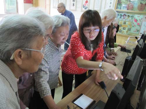 电脑兴趣班吸引了很多老年人的眼球,报名人数超过了以往的大部分兴趣小组。经了解,老人加入电脑兴趣班主要目的是想学习如何利用电脑听音乐、看电影、网购及和海外的家属进行网上视频聊天等。第一次电脑课上,老人们都表现出了极大的学习热情,以致于下课时间到了老人们还缠住社工问很多问题而不舍得离开。由于电脑数量有限,老人人数过多,社工将老人分成3组进行上机学习,这一方法照顾到了所有老人的学习兴趣及要求,得到了老人的赞许。