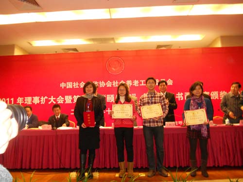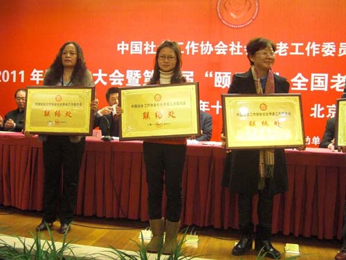 会议为社会养老工作委员会联络处举行了授牌仪式。我公寓也荣幸地成为广西唯一一处养老工作委员会联络处。会议还表彰了2011年全国优秀老年社工,共有来自全国各地的50名社工获奖,其中公寓社工部的3名社工均获该殊荣,成为获奖人数最多的单位之一。这是一年来对公寓社工部工作的肯定,社工部将戒骄戒躁,继续努力,争取在社会养老工作中实现更大的飞跃。