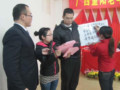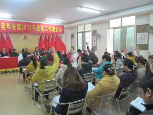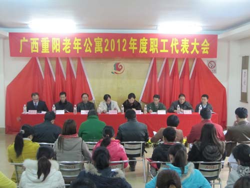 2012年3月1日,广西重阳老年公寓2012年度职工代表大会在职代会组委会的精心筹备下胜利召开。大会本着“实事求是、精益求精、共谋发展”的会议精神,围绕“公寓发展和员工福利”两个中心思想进行。出席本次会议的有广西中医学院护理学院党委书记岑家铭,广西中医学院护理学院工会主席周琦,广西中医学院护理学院工会经检委张义欢,广西中医学院护理学院重阳支部书记班克杰,我公寓院长黄颖,副院长杨龙,以及37名会议代表等。