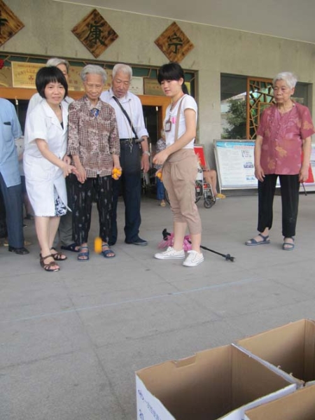 公寓医务科蓝主任与老人一起玩游园