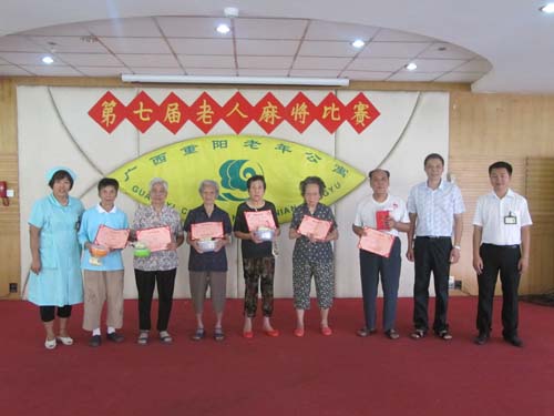 老人麻将比赛是我公寓社工部本着让老人愉悦身心,增强荣誉感而组织的一项休闲娱乐活动。从2006年开始举办第一届,到今年已是第七届了。本次比赛共有40位老人参加,从6月14日开赛,经过两轮角逐后,于6月21日比赛结束。最终,黄其礼爷爷凭过人的技术和好运气喜获第一名,戴玉清奶奶荣获第二名,许少珍奶奶、郭莲英奶奶获第三名,夏青奶奶、王慧琪奶奶并列第四名。
