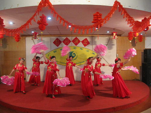 下午三点整公寓舞厅座无虚席,这便是老人们迎接这30多位中年演出团成员的方式。演出由友缘队带来的舞蹈《和谐中国》拉开序幕,漂亮的服装,优美的舞姿博得了爷爷奶奶们热烈的掌声。幽默的主持人被爷爷们称为“阿凡提大叔”,在他的有技术含量的带动下,各个节目衔接得非常自然有序。此外《美丽的广西》、《喀秋莎》、《鲜花永远陪伴你》等舞蹈淋漓尽致地诠释了中年女士们韵味十足的美,让人忍不住惊叹岁月的痕迹也带不走充满活力的青春。整场演出持续了90分钟,老人们都表现出了惊人的“耐力”,坚持坐了一个半小时仍然不舍离去,生怕错过了更精彩的节目以至于演出结束后老人们还回味无穷。