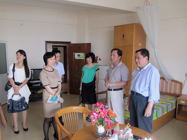2013年5月13日下午,桂林旅游高等专科学校党委书记林娜在教务处处长周其厚的陪同下到公寓参观考察,广西中医药大学党委书记朱华在党办主任周江煜、教务处处长唐梅文、护理学院党委书记冼锦华、教务处副处长莫雪妮、广西重阳年公寓院长黄颖及副院长杨龙等同志的陪同下,热情接待了林娜书记一行。