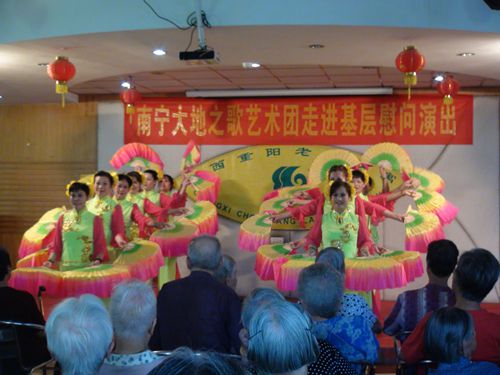 2014823日上午,南宁市大地之歌艺术团到我公寓进行慰问演出。该艺术团已经多次来我公寓慰问老年人,这次他们准备了丰富的歌舞节目和慰问品,为的是感恩这些将青春和汗水奉献给祖国建设的长辈们,他们希望能够通过演出来给这些敬爱的长辈们带来心灵的温暖,带来艺术的享受。