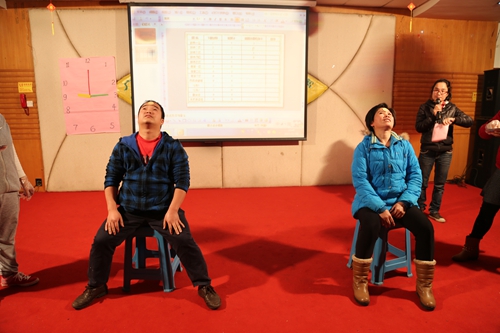 羊年的正月十四晚7:30我公寓全体员工和老人齐聚二楼舞厅,一场重阳版的《奔跑吧,兄弟》正在等着大家。活动内容包括“下腰过杆”“抢凳子”“挤眉弄眼吃饼干”“扮时钟”“你演我猜”。大家摩拳擦掌,跃跃欲试,现场充满了尖叫声和欢笑声。最后,行政二组、康复一区、颐养五区、行政一组分别获得了一二三等奖,其中康复一区和颐养五区并列荣获第二名。