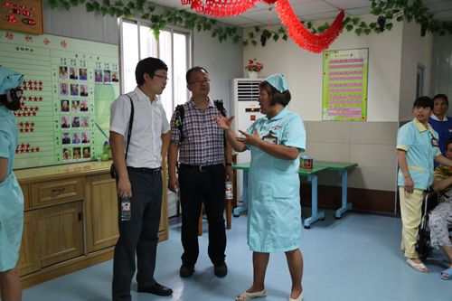 2015年8月8日下午,贵阳中医学院护理学院副院长肖政华和贵阳中医学院第一附属医院医务部主任陈颜二人到我公寓参观,广西重阳老年公寓徐言主任陪同参观。