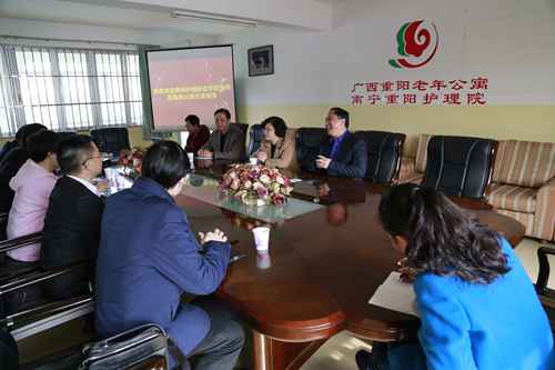 2016年3月2日,贵阳护理职业学院院长张崇芳一行6人到我公寓参观,广西中医学校副校长马秋平、广西重阳老年公寓院长黄颖和副院长杨龙热情接待了来宾。双方就校办企业的问题进行了座谈。座谈后,在广西中医学校副校长马秋平、广西重阳老年公寓院长黄颖和副院长杨龙的带领下,张崇芳院长一行参观了公寓的中医康复保健室、老人活动室、护理院等,并详细了解了各类服务开展的基本情况。