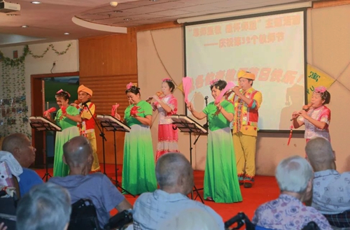 在这充满收获与喜悦的九月,公寓老教师迎来了自己的第32个节日,公寓特开展了以“尊师重教,感怀师恩”的主题活动,联合了南宁市阳光公益组织、南宁市大联小学、南宁市残联艺术团的社会爱心组织与人士,一同为老教师送上节日的祝福,以自己的才艺表演与爱心献礼,表达自己对老一辈教师的尊敬与感恩之情!