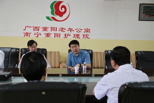2016年10月21日,国家中医药管理局医政司陆建伟副司长、董云龙主任,在广西壮族自治区中医药管理局副局长彭跃钢、广西中医药管理局处长黎甲文的陪同下到我公寓调研。广西中医药大学护理学院冼锦华书记,广西重阳老年公寓黄颖院长、杨龙副院长热情地接待了来访领导,并陪同参观调研,双方就中医药健康养老的问题进行了座谈交流。