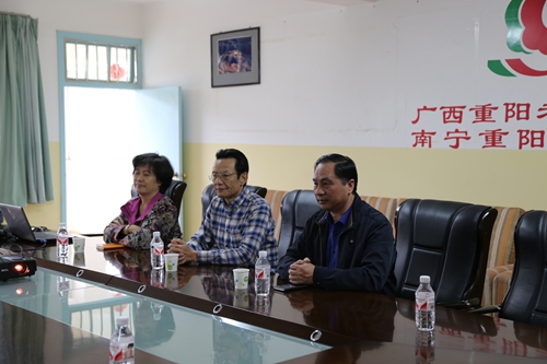 2016年11月23日上午,由南宁市原副市长唐济武、广西医科大学原校长黄光武、广西日报传媒集团副总编辑吴文贾、广西大学原副校长黄维义、广西医科大学转化医学研究中心常务副主任张健、广西医科大学地中海贫血防治研究所副所长陈萍组成的自治区参事调研组莅临我公寓参观调研。广西中医药大学护理学院冼锦华书记及广西重阳老年公寓黄颖院长热情地接待来宾。