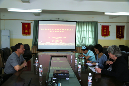 5月11日下午,南宁市卫生学校亚行能力建设项目专家Mrs Doran一行2人莅临公寓参观交流。公寓黄颖院长热情接待了来访客人。
