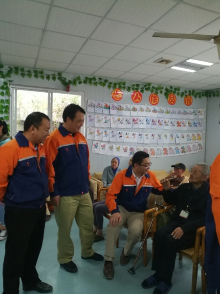 2017年10月24日上午,中交四公局桥梁隧道工程有限公司党支部一行15人带着丰厚的慰问品到我公寓慰问老人。他们聊起老人们的饮食起居、物质生活和精神生活,对于老人的日常生活能够安排得如此充实,李书记一行表示赞叹。老人以一首老歌《东方红》表示欢迎和感谢。感受着他们满满的诚意,老人们的眼眶都泛红了。最后在一张张合影留念中和老人挥手告别。