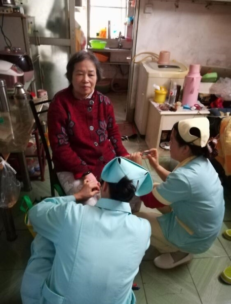 又是一年春天时,又是一个春暖人心的日子。2018年3月6日,广西重阳老年公寓再次践行“献爱心进社区公益活动”。此次来到了南宁市民主路社区,为社区内不能自理及行动不便的老人提供上门护理服务,包括修剪指甲、修剪头发、肢体按摩、泡脚等生活照料服务,家属也积极地向我们咨询了日常的照料经验及康复指导。