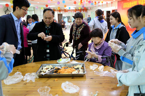 黄勇副校长带领同学和老人一起包饺子